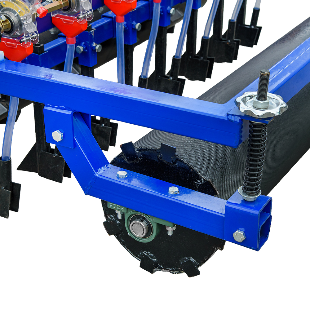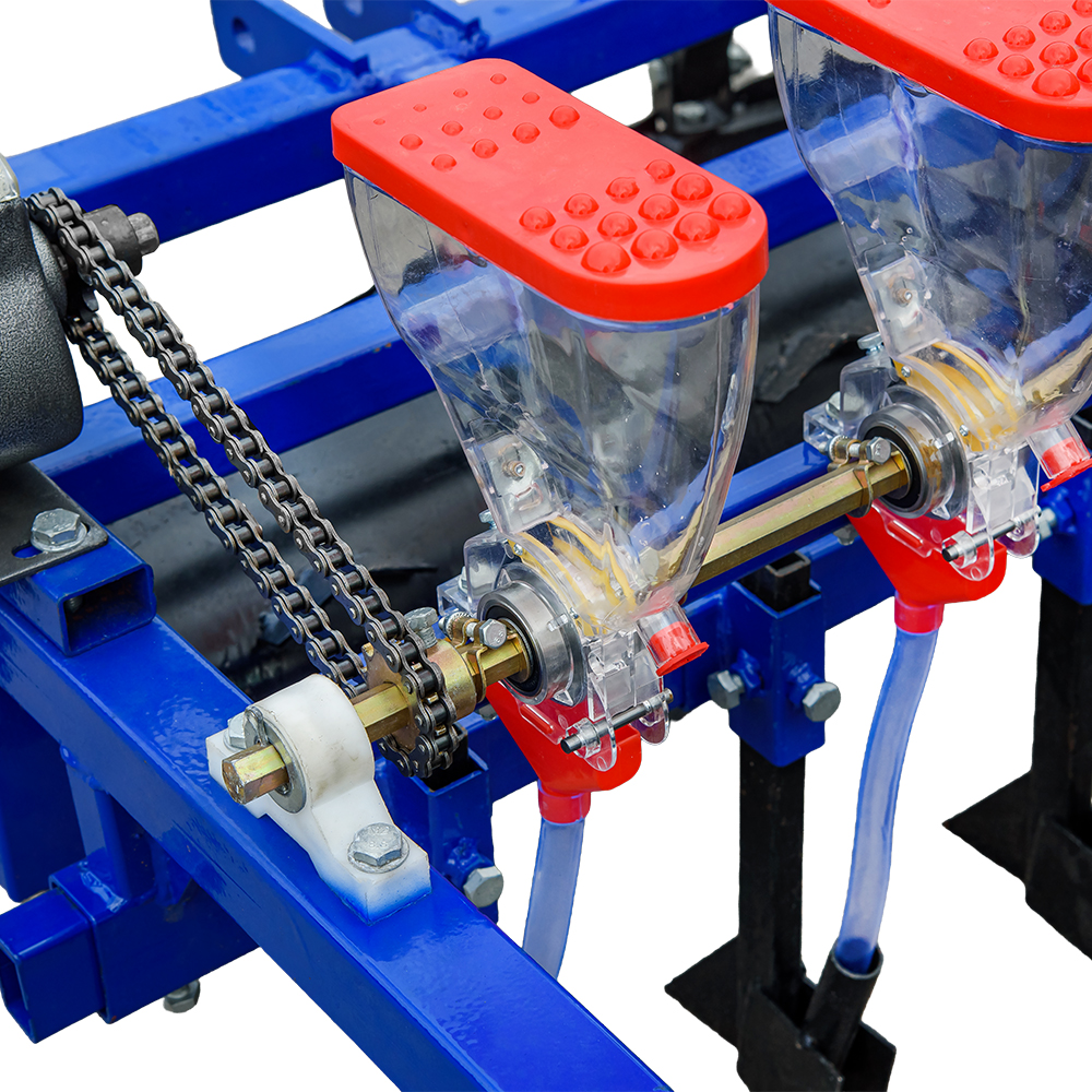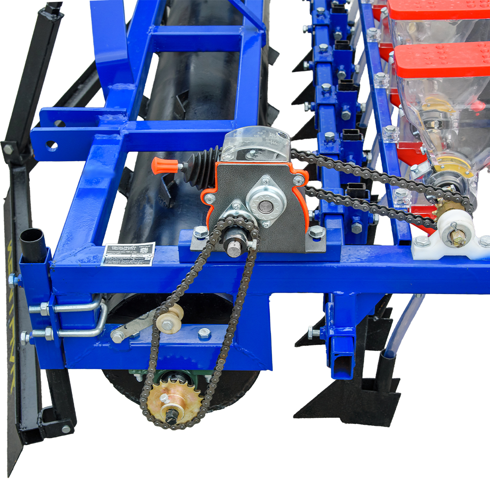Бункеры для посевного материала изготовлены из устойчивого к ультрафиолету прозрачного пластика. Это даёт возможность постоянно контролировать остаток посевного материала в них, чтобы избежать нежелательных случаев, когда посевной материал заканчивается и образуются пропуски посева. Каждый бункер оборудован крышкой, которая не позволяет высыпаться зерну во время движения по неровной поверхности и защищает его от осадков и грязи. Также бункер имеет отверстие для удобного удаления остатков семян после завершения работы.
