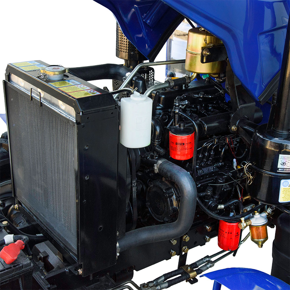 В основе полноприводного трактора KENTAVR B244DXU трёхцилиндровый дизельный двигатель КМ385ВТ с непосредственным впрыском топлива. Его рабочий объём 1532 см³ позволяет получить ровную, спокойную тягу без резких провалов под нагрузкой. Мощность в 24 лошадиные силы подобрана так, чтобы трактор мог работать с навесным оборудованием, перевозить грузы и выполнять полевые работы, не перегружая узлы.