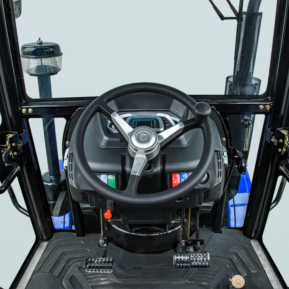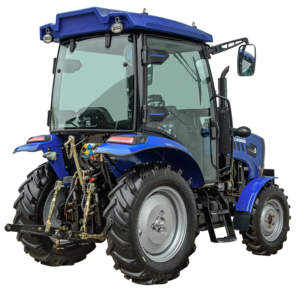 Модель має кабіну зі склоочисником, опаленням, вентилятором та магнітолою, що створює комфортні умови в будь-яку погоду. Задня триточкова навісна система з гідропідйомником вантажопідйомністю 550 кг дозволяє агрегатувати широкий перелік обладнання. ВВП із заднім розміщенням має дві швидкості: 540 / 720 об/хв та підтримує одночасне буксирування і привод навісного обладнання. Гідравлічна система забезпечує 2 виходи для підключення техніки та має окремий бак на 6,5 л. Колісна база — 1830 мм (передні 7.50-16, задні 11.2-24) забезпечує стійкість у полі.